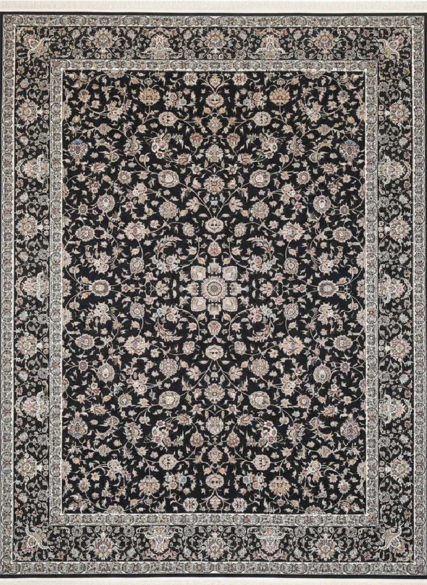 بافت این فرش با ماشین بلژیکی نسل جدید و نخ آلمانی اکریلیک باعث شده که طرح گلافشان رزیتا، بافتی نرم، مقاوم و شفاف داشته باشد. زمانی که نور روی سطح آن میتابد، رشتههای نقرهای مانند حاشیهای از مه درخشان جلوه میکنند — جلوهای که فقط در فرشهای لوکس صادراتی دیده میشود.