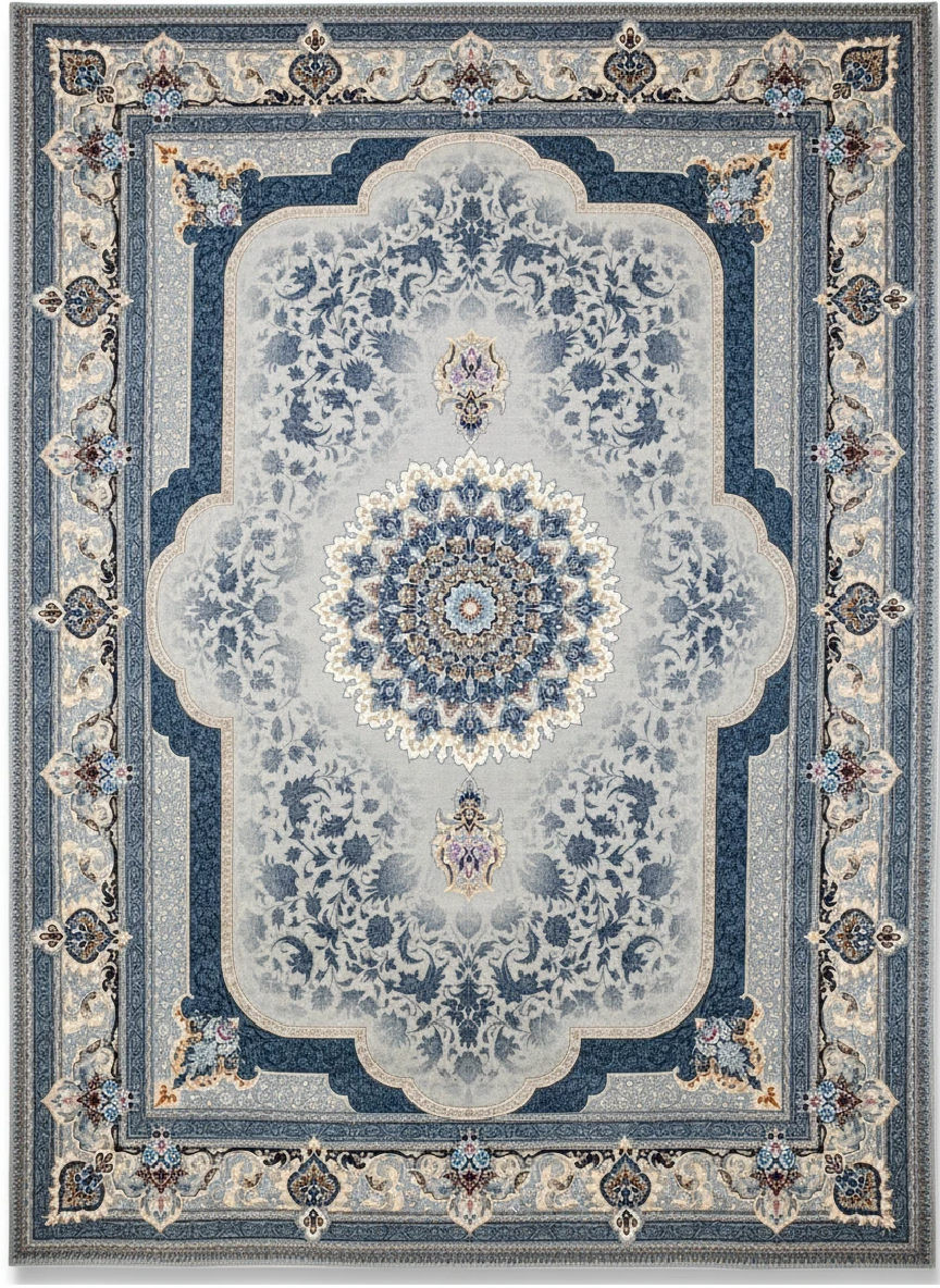این فرش با نخ آلمانی اکریلیک هیتستشده (ضدپرز، بادوام، لطیف) و توسط دستگاه فوقدقیق بلژیکی بافته میشود؛ به همین دلیل وضوح نقشه، ریزبافت بودن و ماندگاری رنگ آن در سطح بسیار بالا قرار دارد.