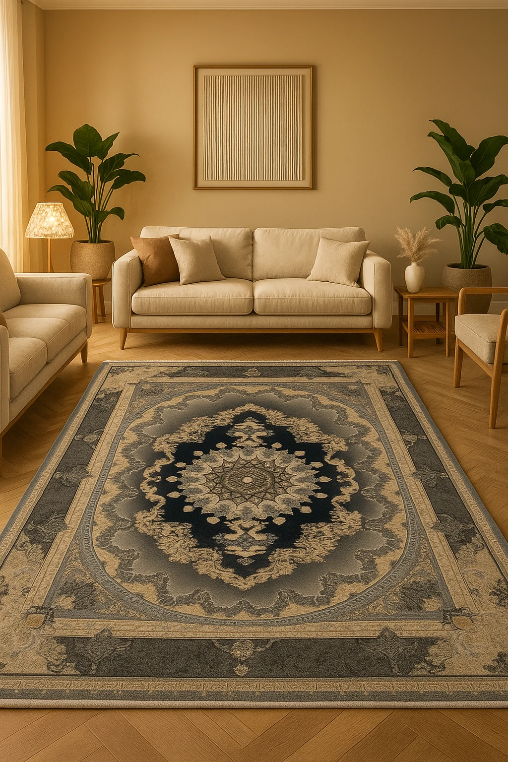 فرش کارن در چهار رنگ محبوب سرمهای، دودی، نقرهای و بژ تولید میشود و برای دکورهای کلاسیک، لاکچری و مدرن انتخابی فوقالعاده است.