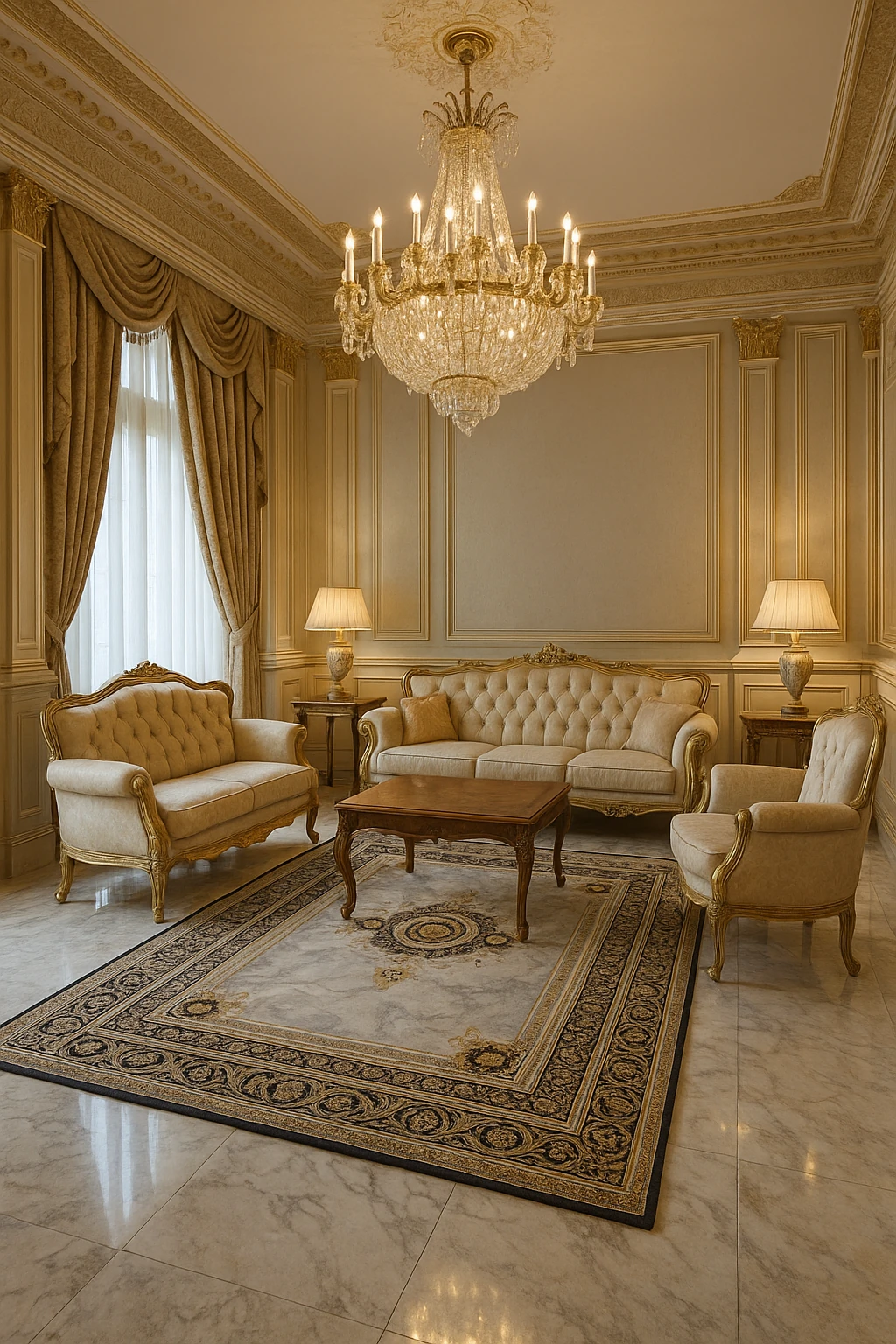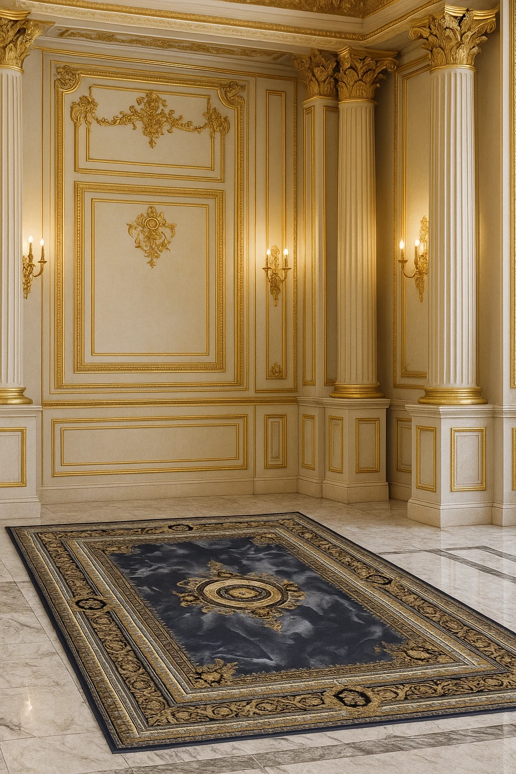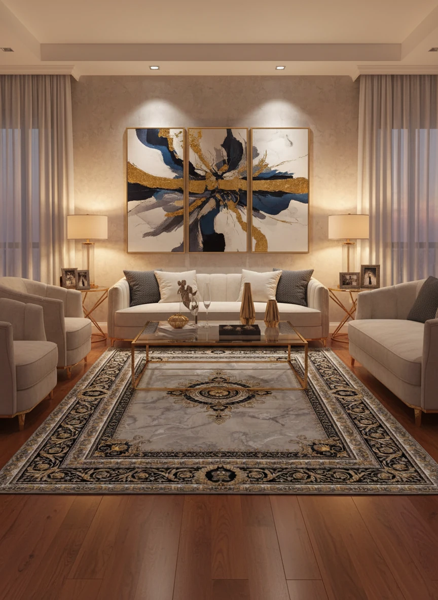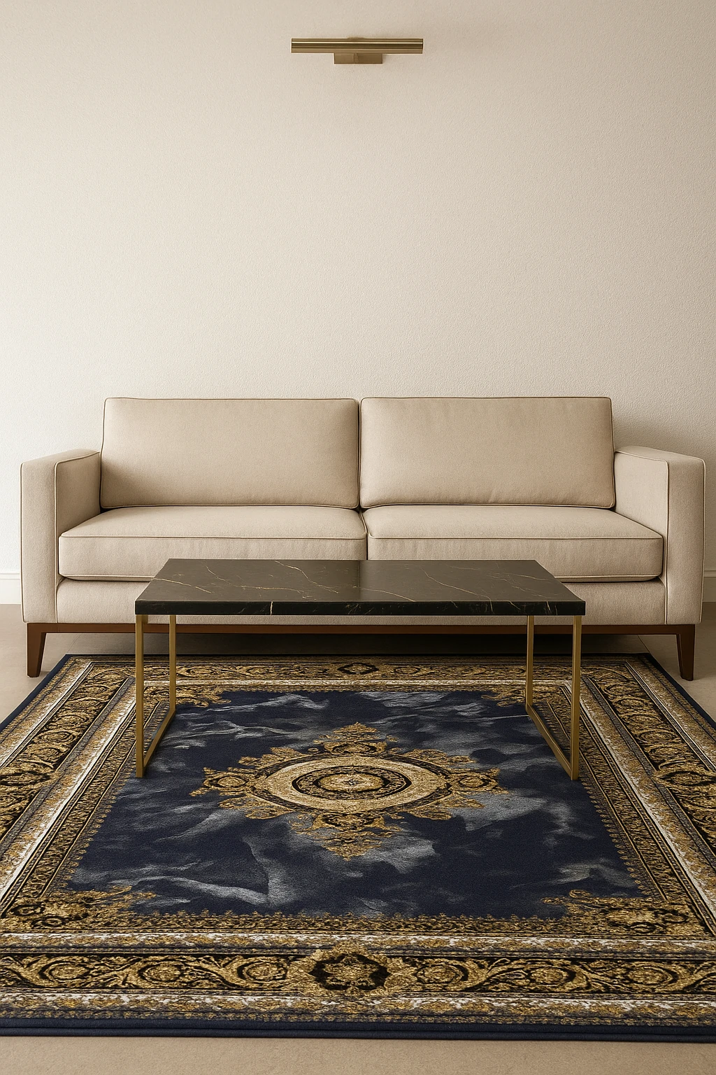 فرش ورساچه یکی از لوکسترین و سلطنتیترین طرحهای بازار فرش کاشان است؛ این مدل با الهام از استایل اورجینال Versace Royal طراحی شده و با حاشیههای باروک طلایی، مدالیون مرکزی شاهانه و پسزمینه سنگی–ابر و بادی، جلوهای بسیار اشرافی و خاص دارد.