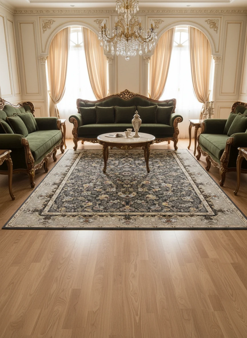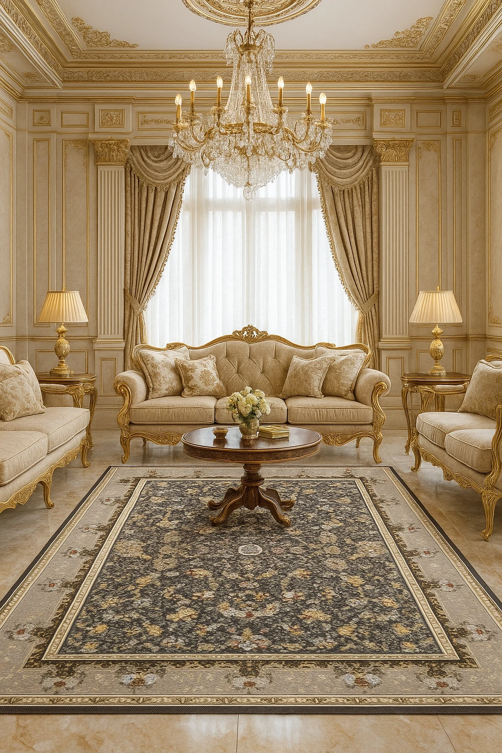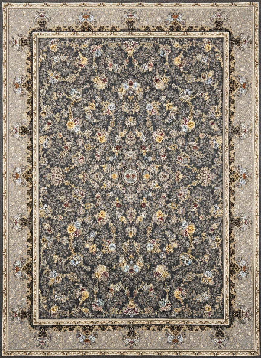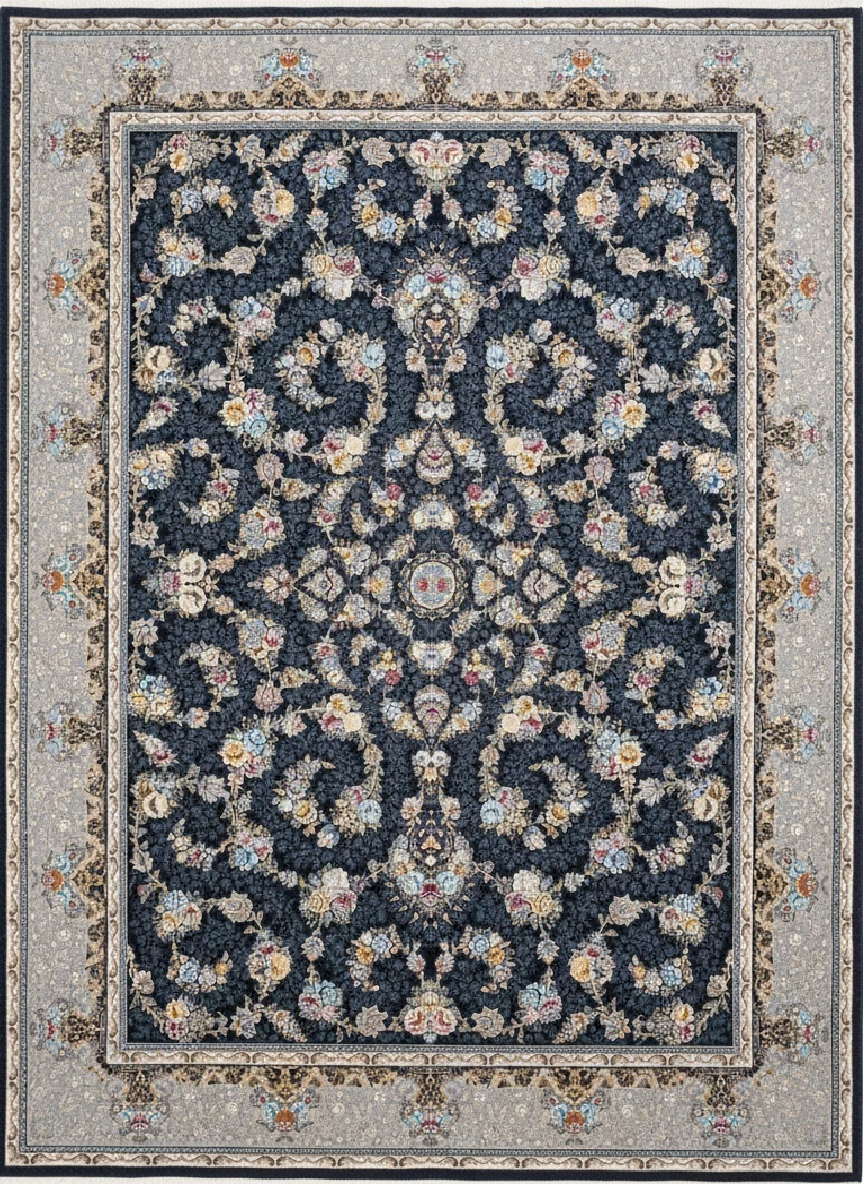 طرح افشان رز دودی یکی از خاصترین نقشهای کلاسیک در بین فرشهای کاشان است. در نگاه اول، تضاد جذاب زمینهٔ دودی تیره با گلهای روشن رز و نوار نقرهای حاشیه چشم را خیره میکند. این فرش برای خانههایی طراحی شده که به دنبال شکوه در عین آرامش هستند — جلوهای از هنر ایرانی، با فناوری اروپایی.