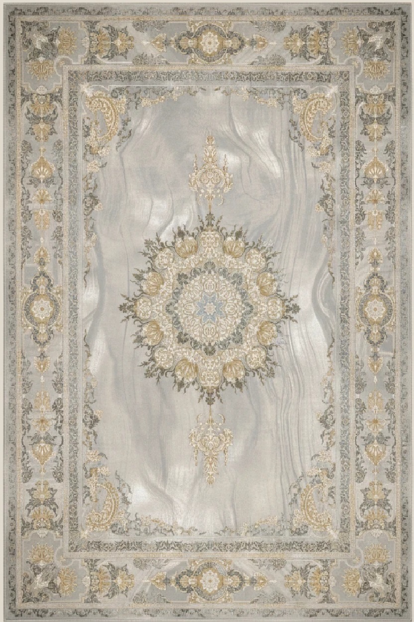 فرش برسین کاشان | نقرهای و بژ، 1200 شانه هیت ست با دستگاه بافت بلژیکی