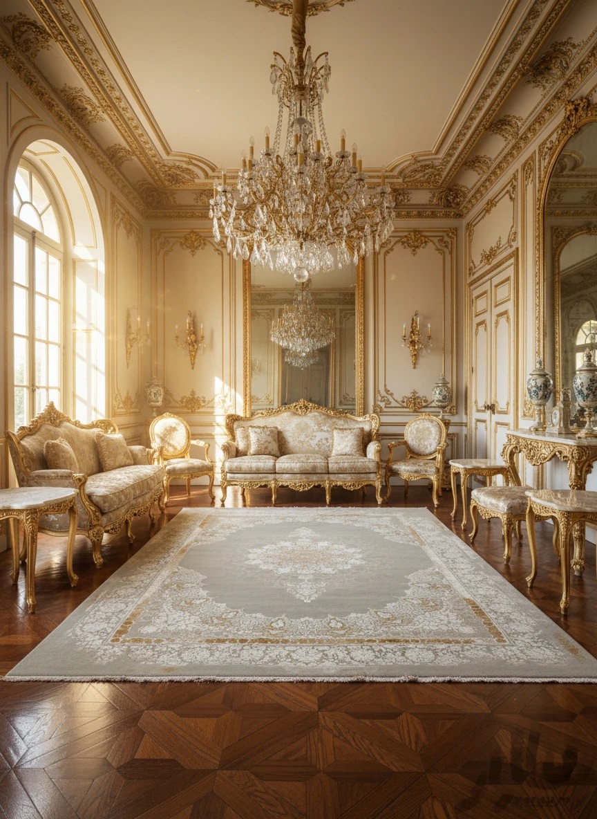 فرش یاقوت کاشان 1200 شانه با تراکم 3600، نخ آلمانی هیت ست و بافت بلژیکی؛ کلاسیک، مجلل، کمپرز و ماندگار، در رنگهای نقرهای و بژ.